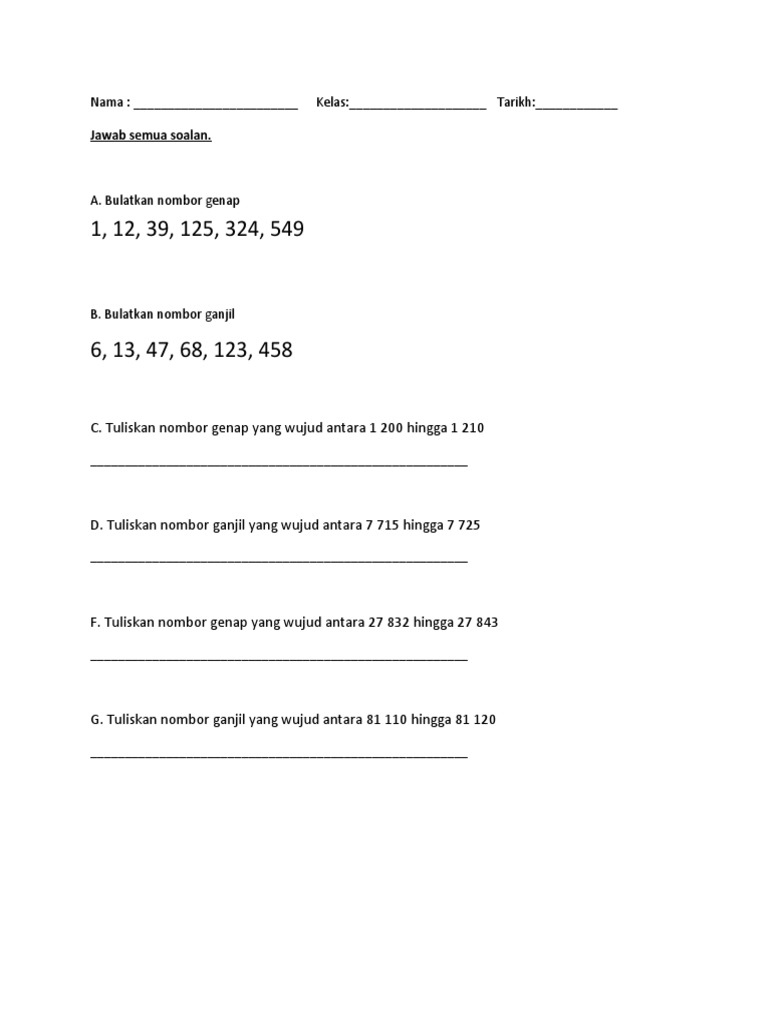 The 44 english sounds fall into two categories: Nombor genap & nombor ganjil draft. Those who are not familiar with mathematical terms in english, here i sthe help.please send me suggestions. 0 ratings0% found this document useful (0 votes). If you think about it, any other even number is also going to be. Afrikaans albanian amharic arabic armenian azerbaijani basque belarusian bengali bosnian bulgarian catalan cebuano chichewa chinese (simplified) chinese (traditional) corsican croatian czech danish dutch english esperanto. Marker as you are get on parade fall out dismiss. English never follows the one letter — one sound rule. Play this game to review early math. Genap adjective (of numbers) evencomplete, fullbilangan genap even number. .nombor ganjil 1.8mb dan streaming kumpulan lagu nombor genap nombor ganjil 1.8mb mp3 terbaru di metrolagu dan nikmati, video klip nombor hasil diatas adalah hasil pencarian dari anda nombor genap nombor ganjil mp3 dan menurut kami yang paling cocok adalah nombor genap. Translation of genap in german, french, spanish, arabic, japanese, korean. Look through examples of nombor genap translation in sentences, listen to pronunciation and learn grammar.