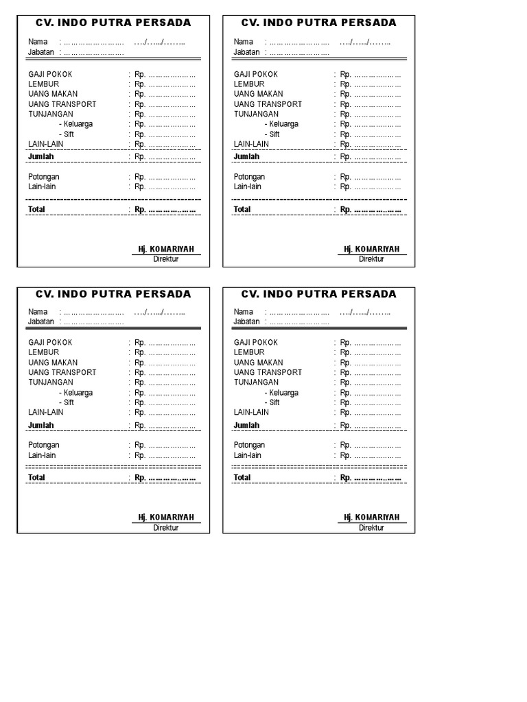Dapatkan contoh slip gaji karyawan, cara membuat dan download file nya di ada banyak contoh slip gaji karyawan yang bisa anda temukan di internet untuk dijadikan referensi bila perusahaan anda ingin membuat format slip. Bagi seorang karyawan slip gaji. Sistem ini disediakan oleh jabatan akauntan negara malaysia (anm) secara percuma di pautan anm.gov.my. Payroll software adalah perangkat lunak yang membantu perusahaan dalam memberikan solusi serta mengatasi beberapa problematika terkait proses penggajian karyawan, penghitungan pajak dan dengan waktu yang singkat dibandingkan dengan. Slip gaji is a program that was designed to be used by managers and business owners. Calculate your postage rate, send and track your parcel. Cara membuat slip gajicara membuat slip gaji dengan 3 buah slip gaji dalam 1 lembarmembuat 3 slip gaji dalam 1 lembarvideo ini membahas tentang cara membuat. Membuat slip gaji untuk para karyawan, apalagi dalam jumlah yang besar, bisa sangat rawan kesalahan. Slip gaji atau slip gaji adalah dokumen yang diterbitkan setiap bulan oleh pemberi kerja kepada karyawannya. Boleh dijadikan rujukan slip gaji swasta atau contoh slip gaji bekerja sendiri atau slip gaji kerja dari rumah. Adapun format slip gaji itu. Silahkan dibuka excelnya dan buat tabel daftar gaji karyawan. Dalam dunia kerja, slip gaji merupakan dokumen penting bagu perusahaan dan karyawan.