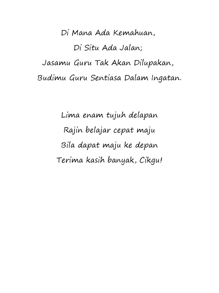 Pantun terima kasih ialah salah satu cara untuk dapat mengungkapkannya baik kepada orang tua, teman, guru ataupun pasangan. Banyak udang banyak garam, banyak orang banyak ragam. Tinggi rendah panjang lebar pergi sekolah mesti belajar guni. Terima kasih kerana sudi bertandang ke blog taman seribu puisi. Terima kasih daun keladi, kalau boleh hendak lagi.