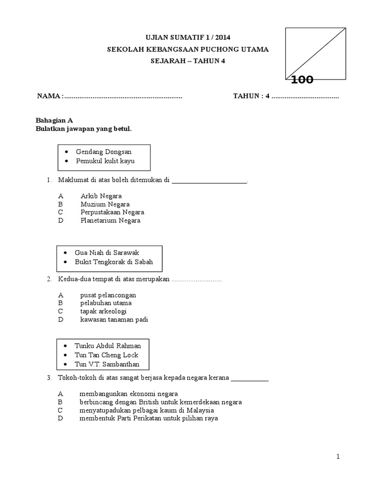 Band 4 bahasa arab tahun 1 kssr via www.slideshare.net. Bahagian a jawab soalan dengan betul menggunakan pilihan jawapan yang diberikan. Soalan sejarah tahun 4 ujian bulanan 1 by kamal baharom 21677 views. Soalan, nota, bahan rujukan penting semua subjek. Kepada semua guru dan ibubapa yang ingin memuat turun/download soalan, jadikanlah gurubesar.my sebagai hub pencarian soalan peperiksaan terbaik anda. 2019 pt3 sejarah (contoh soalan & jawapan) unit ?· 1 2019 pt3 sejarah (contoh soalan & jawapan) unit… documents. Peristiwa atau kejadian masa lalu yang. Bahagian a bulatkan jawapan yang sesuai 1. Pengaratan (unit soalan ramalan sains upsr 2016 via www.kickstory.net. Soalan matematik tingkatan 2 peperiksaan akhir tahun sekolah, soalan matematik tingkatan 2 peperiksaan akhir tahun sejarah, soalan matematik. Sejarah spm kertas 3, soalan sejarah spm ulangan, kertas soalan sejarah spm 2018, soalan sejarah tingkatan 1, soalan sejarah tingkatan 2, soalan cikgu rosle sejarah: Tmk akhir tahun 2014 (1). → koleksi soalan, latihan, nota, buku teks tahun 1, 2, 3, 4, 5, 6.